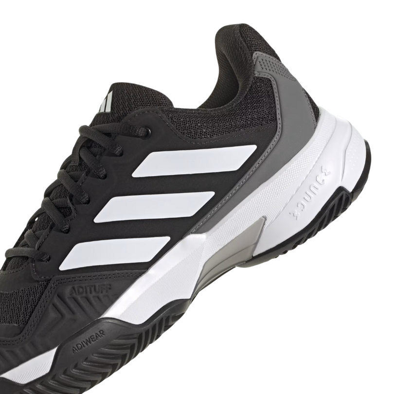 Leur tige en mesh respirant garantit une aération continue, gardant vos pieds au frais même durant les échanges les plus intenses. La semelle extérieure Adiwear, offre une excellente traction et une durabilité accrue. Conçues avec au moins 20% de matériaux recyclés, ces chaussures allient performance, confort et engagement environnemental.