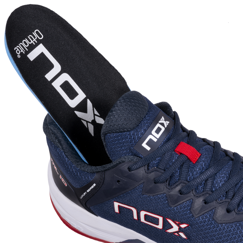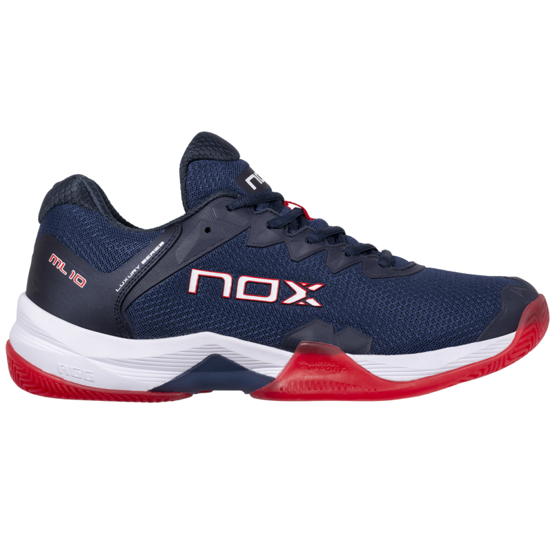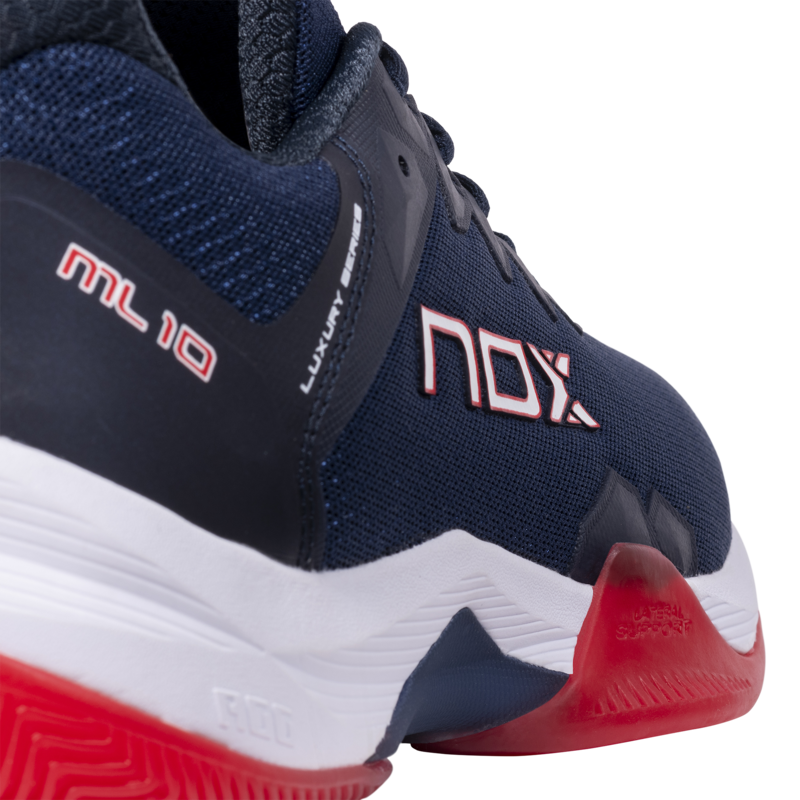 Les chaussures de padel Nox ML10 Hexa Bleu Marine-Rouge sont idéales à la fois pour vos entraînements ainsi que vos matchs en compétition.