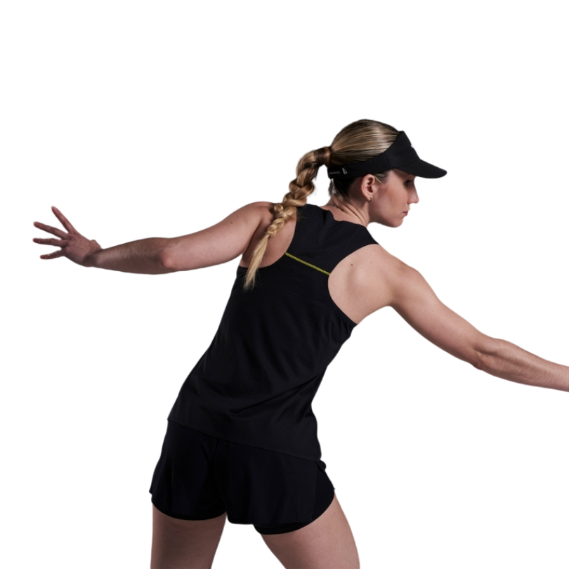 Ce débardeur féminin est conçu pour les sports de raquette comme le padel, particulièrement adapté aux fortes chaleurs. Il offre une excellente respirabilité, un confort optimal et une grande liberté de mouvement grâce à son col rond et son dos nageur qui libèrent les omoplates.