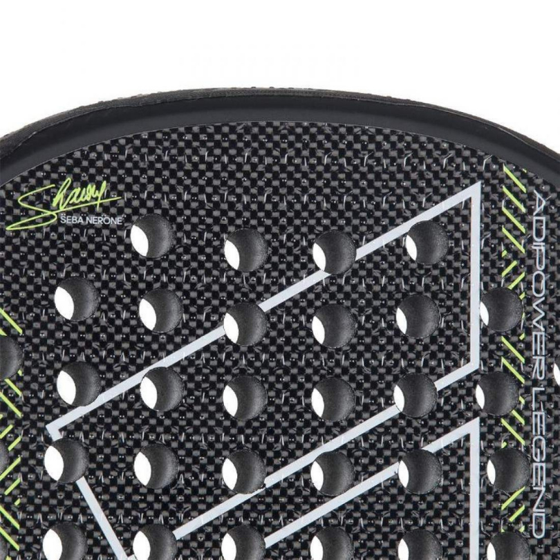 La Adidas Adipower Legend de Seba Nerone est une raquette de padel haut de gamme conçue pour les joueurs professionnels à la recherche de puissance maximale et de sensations explosives. Son format Diamond Oversize et son équilibre en tête favorisent un jeu d’attaque agressif, idéal pour dominer les échanges au filet et conclure les points avec autorité.