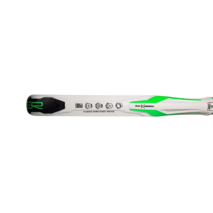 Elle est dotée d’une gomme EVA souple recouverte de fibre de verre pour un maximum de confort et une grande tolérance. La technologie Exoskeleton, avec de la fibre de carbone au niveau du cœur, apporte plus de rigidité et de durabilité, tout en générant davantage de puissance à chaque frappe.