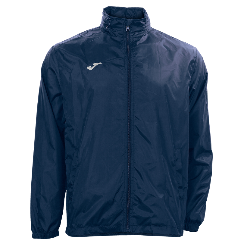 La veste coupe-vent comporte deux poches latérales avec fermeture éclair, et le logotype Joma est imprimé au niveau de la poitrine.